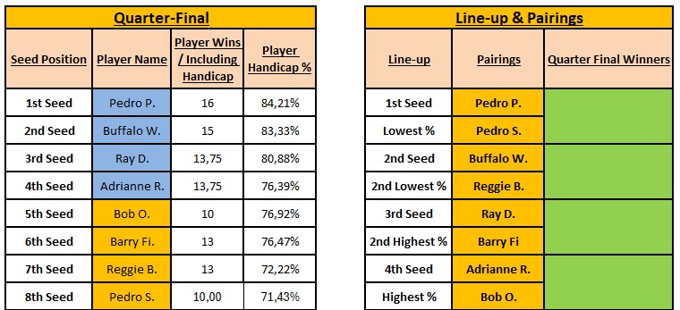 Get ready for the Quarter-Final and Semi-Finals coming this Tuesday, Nov. 18th at CORNER PUB starting at 7pm with the individual players showing the best they have followed by the teams.
